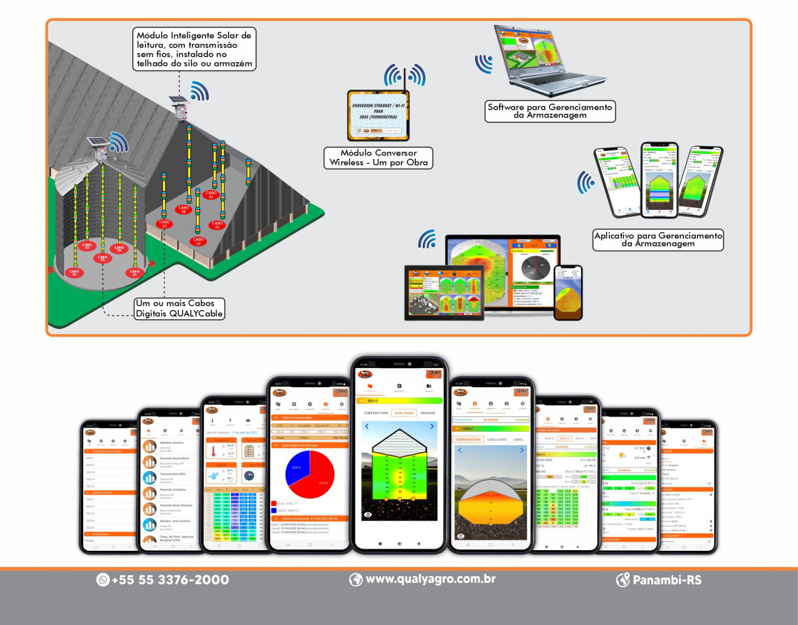 • Informa: Qualidade, Umidade e Temperatura da Armazenagem de forma 100% automática.